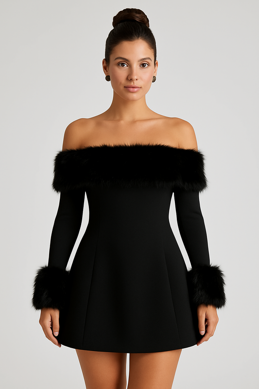 Avrilyaan Off-Shoulder Backless A-Line Mini Dress - Black
