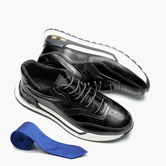 XEBOS Stitched Leather Lace-Up Casual Shoes