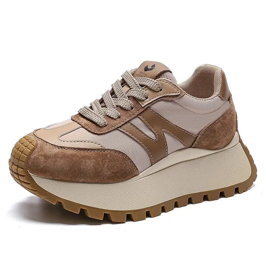 SOMILISS Platform Sneakers for Women Leather Suede Microfiber Leather Patchwork Round Toe Lady Fashion Causal Non Slip Shoes