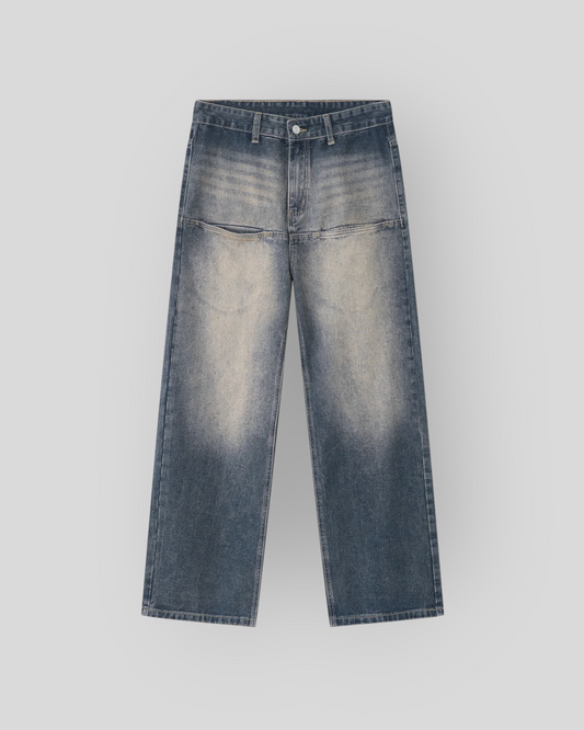 UrbanFade Pleated Denim Baggy StreetWorn Gradient Wide Leg Women's Jeans
