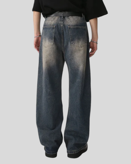 American Deep Blue Retro High Waist Oversized Jeans Pants